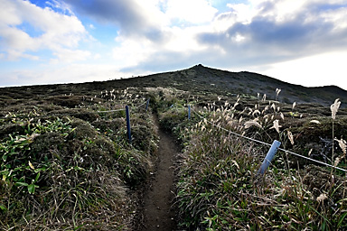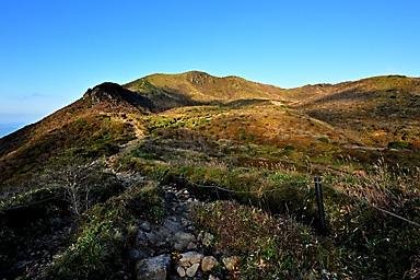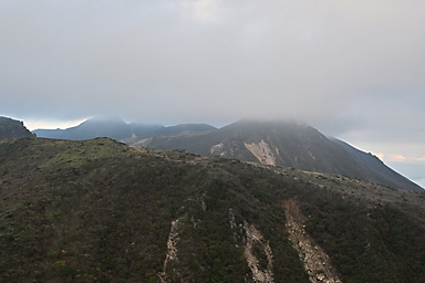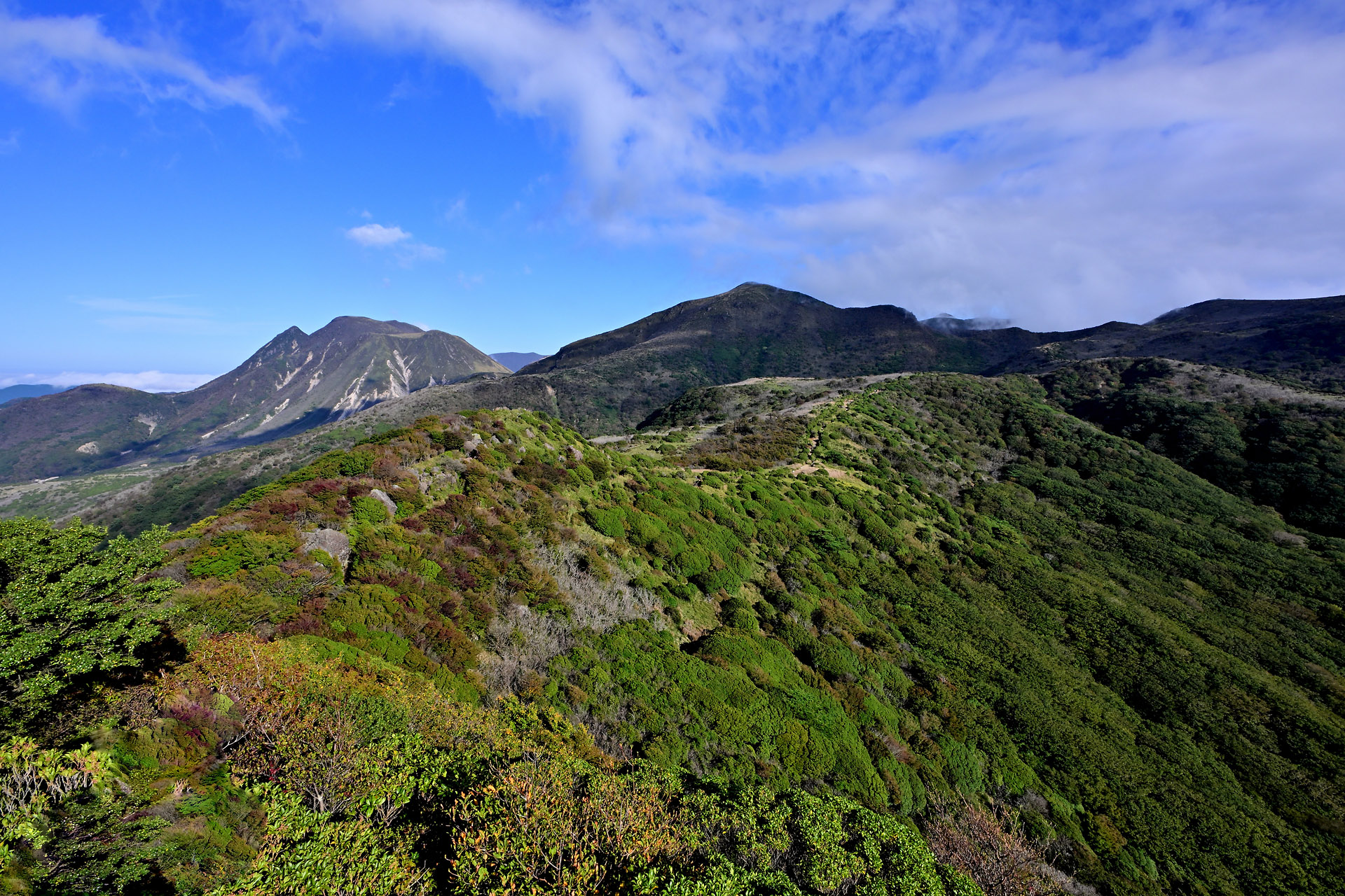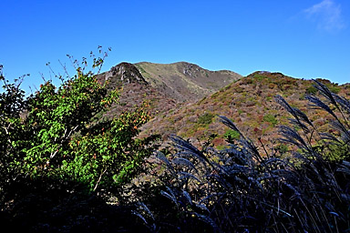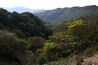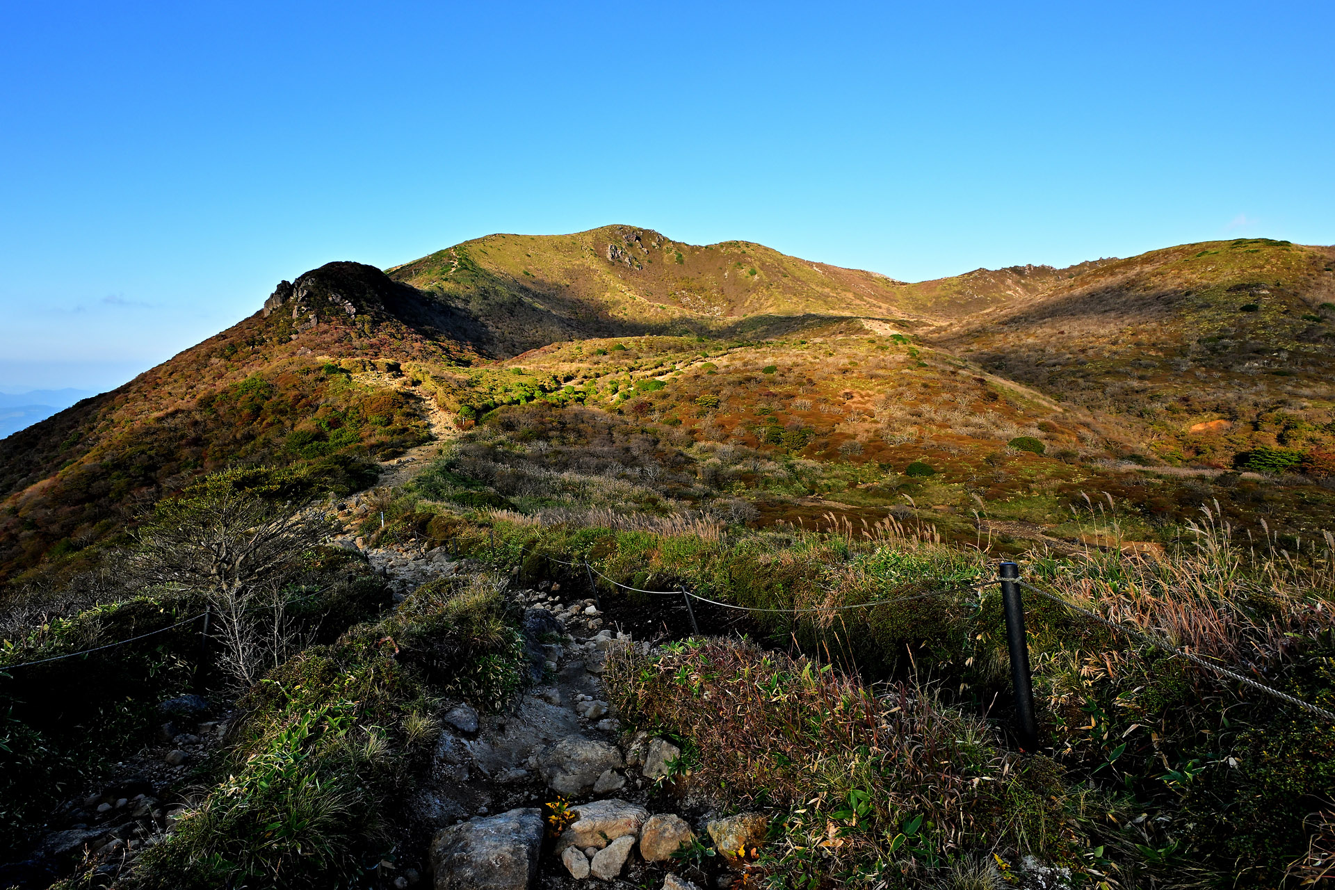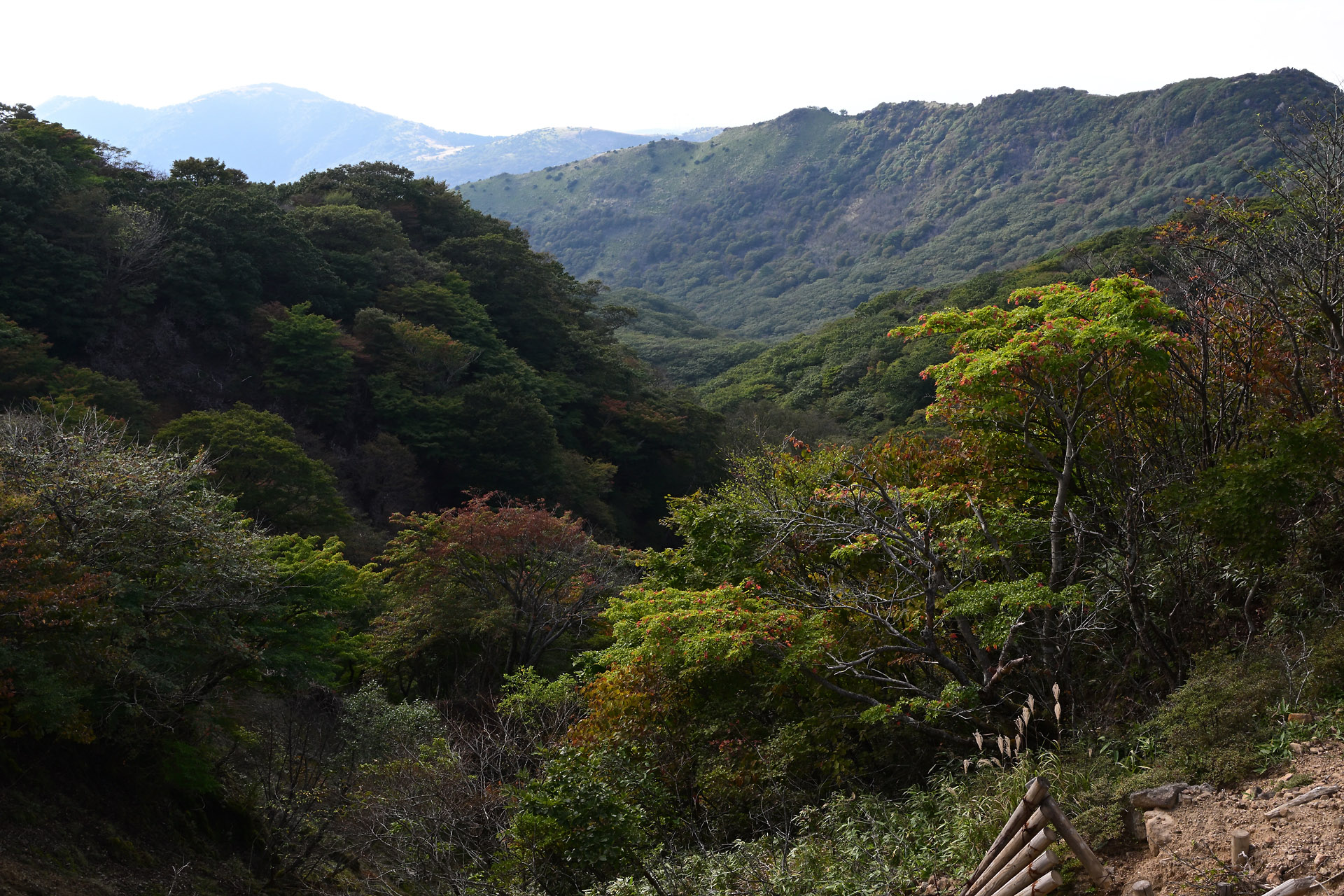 年々エスカレートするミヤマキリシマと紅葉シーズンの大混雑が、今年もやってきました。休日になると大挙して押し寄せる登山者が、道路にはみ出して駐車するため交通渋滞が発生するなど、 迷惑駐車が原因の事故や苦情が後を絶たず、昨年はついにこれまで大目に見られていた路肩も含めて、駐車禁止区間の駐車車両に全てに警告書が出されたようです。私がこれまで目撃しただけでも、 昨年は過去一番に酷かったです。 大船山頂御池湖岸の撮影場所には場所取りの三脚が並び、山頂向かいの岩の上にはいつの頃からか登山者が競って押し寄せるようになりました。SNSにはその様子が掲載され、 更にエスカレートしているように感じます。三俣山北峰からのご来光撮影もまたしかりで、もう大船山も三俣山もそろそろ卒業しても良いかな〜と思われてなりません。年々体力の衰えを実感するため、 数年前から大船山への朝駆けご来光観賞は断念しています。そんなことで三俣山に体力とタイミングというリソースを集中させてきたのですが、今年の秋はどうしようかと思案中であります。 思いのほかドウダンの色付きが良いのが星生山西斜面で、ここは九重連山のゴールデンルートである牧ノ戸峠から久住山への登山道に観賞場所があるため、休日だけでなく平日ですら混雑する場所です。 ミヤマキリシマのシーズンもそうですが、昼間の登山者は16時を過ぎるとほとんど下ってしまい、山が静かになります。この時刻から日暮れにかけてであれば、混雑もなく静かな山行ができるはずです。 今年は新たな紅葉観賞スポットの開拓もしたいので、これまであまり寄りつく機会がなかった星生山西斜面にスポットを当ててみようかと考えています。 今回は偵察ということで、午前の仕事を終えてから直行し、14時30分過ぎに牧ノ戸峠着。平日、しかも午後なので駐車場にも随分空きスペースがあり、難なく駐車できます。 日没までは3時間近く余裕があるので、のんびり装備を確認して入山。続々と下ってくる登山者も、私なんぞよりはるかに高齢と思われる毎日休業日の「サンデー毎日」のお歴々ばかりです。 いつの日かこんな余裕がある生活をしたいものですが、捨てがたい現役時代の浪費癖と物欲がわざわいし、いまだに仕事に出ているという体たらくであります。一刻も早く悟りの境地に達せねば・・・ 沓掛山南側斜面から鍋谷上部にかけては、ドウダンがわずかに染まっている程度で、次週の朝晩の冷え込みで一気に染まる希望的観測(笑)です。染まらずに枯れてしまうという、 最悪の事態だけは避けてほしいものです。扇ヶ鼻分岐手前付近から望む星生山西斜面のドウダンは沓掛山よりわずかに色付きが進んでいるかな〜という程度で、こちらも次週の冷え込みで一気に 色付いてくれることに期待しましょう。 扇ヶ鼻の台地に登り、陰りゆく久住山から中岳や天狗ヶ城方面を眺めつつ夕暮れを待ちます。肥前ヶ城の崖に扇ヶ鼻の影が伸び、久住山西斜面が夕日に染まり始めています。 夕景はさぞやという期待も空しく、10分後には山頂にガスがかかり始め久住山は見えなくなっていきます。日の出と日没直前に山にガスがかかるという何とも空しい現象はまたしても再来し、 今回の夕駆けは見事に撃沈。西の地平線近くにわずかばかり雲の切れ間があるので、標高の低い沓掛山あたりならワンチャン夕日が望めるかもと期待して大急ぎで山を下るものの、 期待も空しく追い打ちをかけるように二度目の撃沈です。(涙)